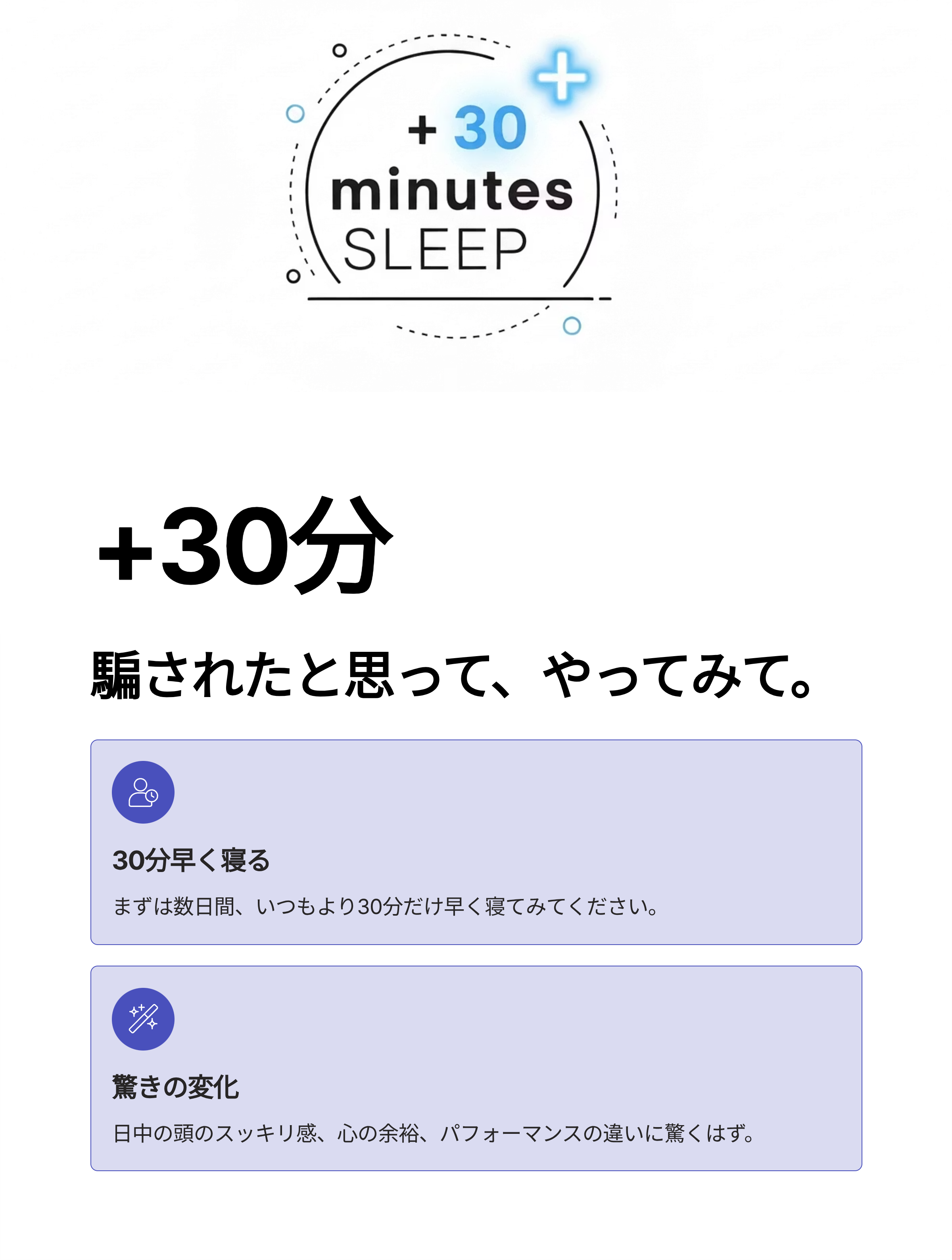 いきなり7時間確保するのが難しければ、まずは騙されたと思って、数日間いつもより30分早く寝ることを試してみてください。