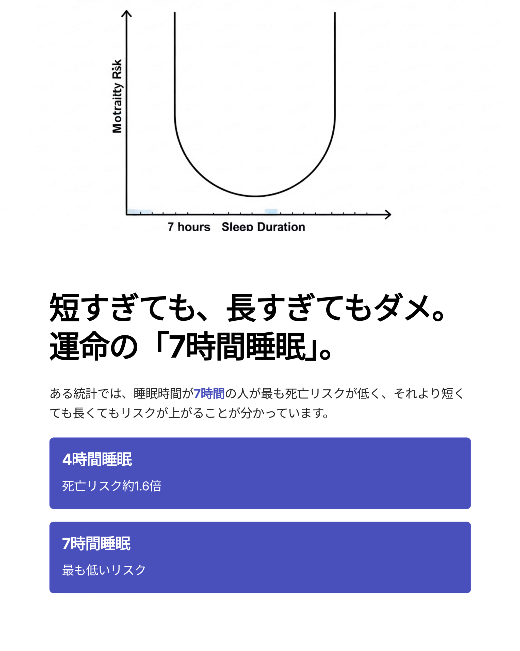 さらに、睡眠時間は私たちの死亡率に直接的な影響を与えることが、数々の研究で示されています。