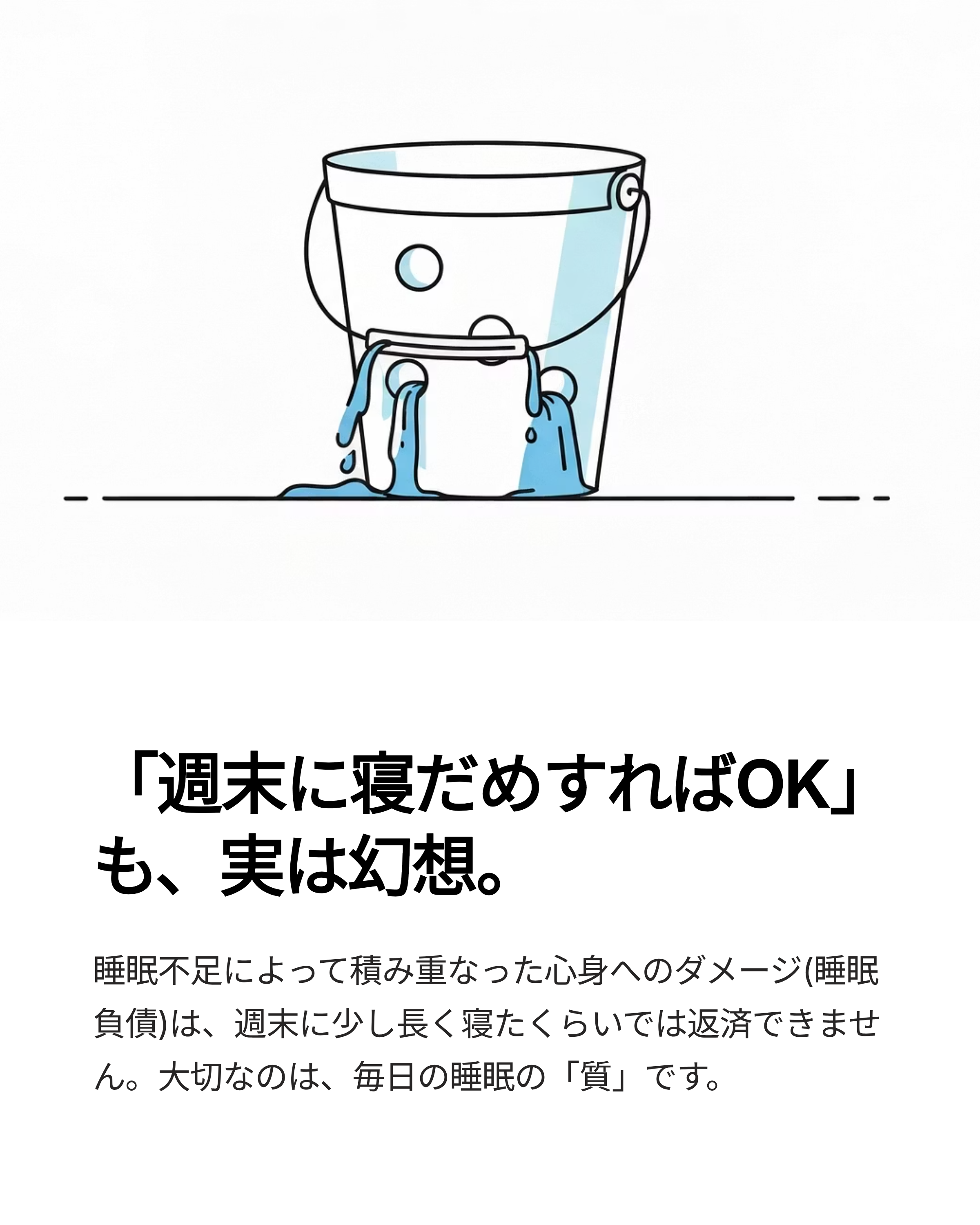 週末の寝だめでは、平日の睡眠負債は返済できません。