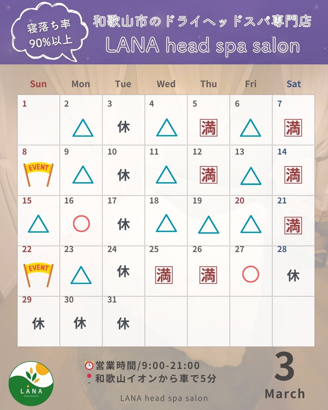 3月のサロン予約状況