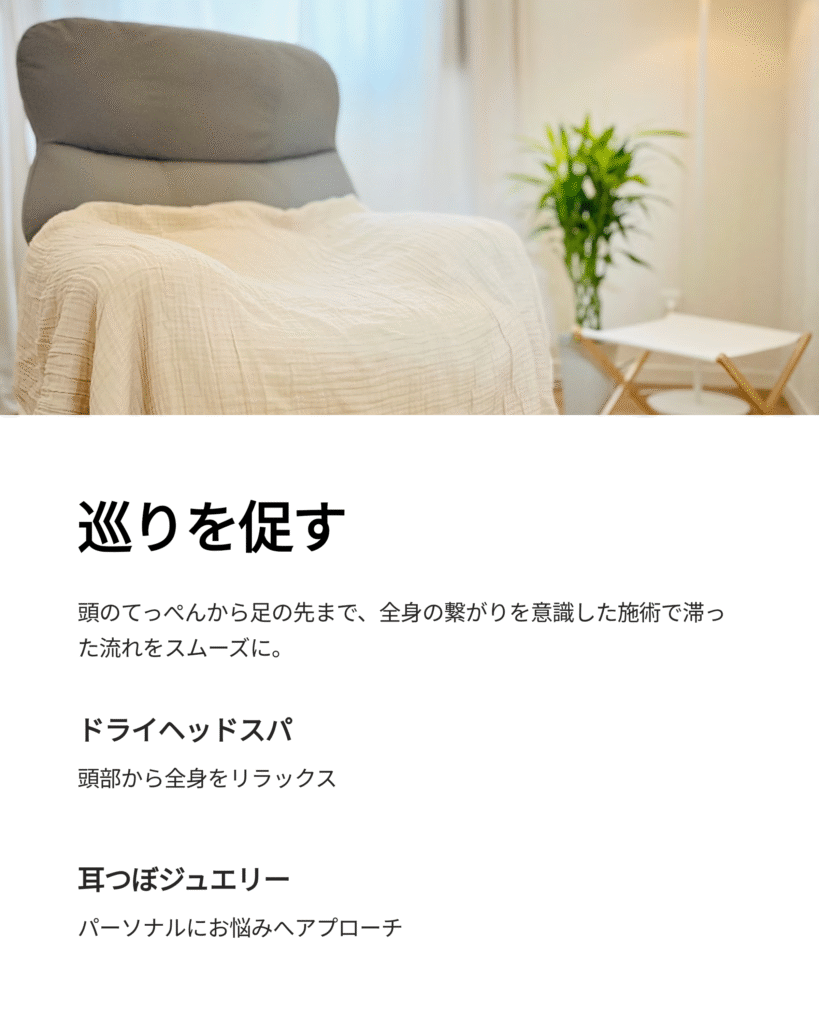 LANAの施術は、この「巡り」を整え、体の内側からアプローチすることを最も大切にしています。
