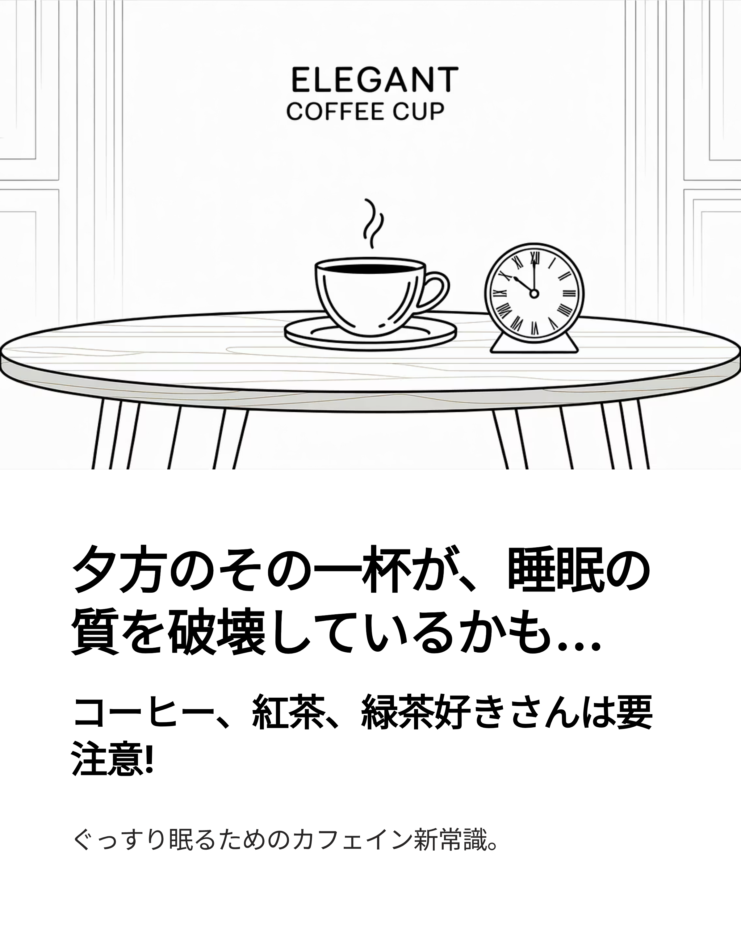 その一杯が、あなたの睡眠の質を奪っているかもしれません 仕事の合間や、家事の一段落に、コーヒーや紅茶でホッと一息。そんな時間が、日々の大切な癒やしになっている方も多いのではないでしょうか。 もしあなたが「カフェインを摂っても、夜は普通に眠... -